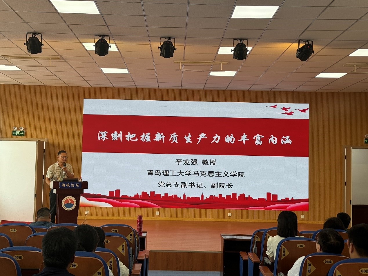 2024年7月11日下午,ylzz总站线路检测中心马克思主义学院副院长、新时代国企党建协同创新中心支部书记李龙强教授应邀参加青岛海洋技师学院海校论坛,开展了题为《深刻把握新质生产力的丰富内涵》的学术报告,青岛海洋技师学院各校区领导、老师参加了此次讲座。