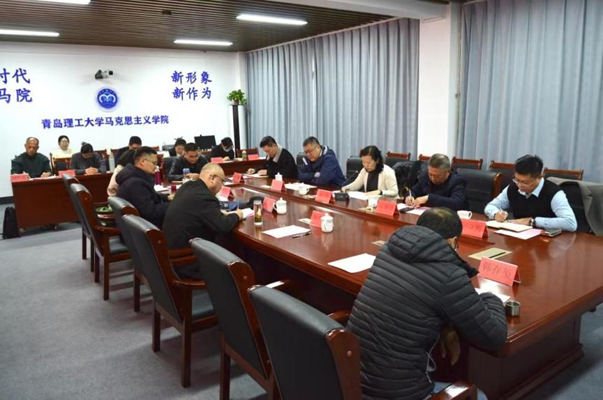 马克思主义学院教授、驻青国企党建与发展研究会副秘书长王菁华,青岛市国资委社会责任和对外合作处二级调研员、驻青国企党建与发展研究会副秘书长曲华,青岛凤凰影视传媒股份有限公司董事长兼总经理王晓东,青岛市驻青国企党建与发展研究会秘书处会员联络主任荆立海,马克思主义学院院长华章琳,副院长李龙强,新时代国企党建协同创新中心支部党员及学院教师代表、研究生参加会议。会议由党委常委、统战部部长、马克思主义学院党委书记陈伟主持。