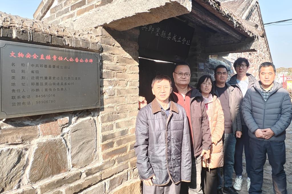 活动首站来到中共即墨县委成立旧址。师生们驻足于山东省文物保护单位石碑前,聆听旧址承载的革命历史:这里曾是即墨地区党组织早期活动的核心阵地,见证了地方党组织的诞生与成长。在旧址纪念馆内,泛黄的史料、复原的革命场景,生动再现了先辈们在艰苦环境中坚守信仰、投身革命的峥嵘岁月,让师生们深刻感受到初心与使命的重量。