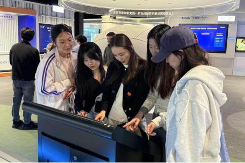 在卡奥斯工业互联网生态展厅,师生们通过数字孪生技术平台、智慧城市沙盘等数字化场景,零距离感受工业互联网平台如何重构生产流程、赋能产业升级。当看到海尔COSMOPlat平台将用户需求直连智能制造的全流程时,研究生张利国感慨:“在《资本论》课堂讨论的个性化定制生产,竟在眼前变成了现实。”