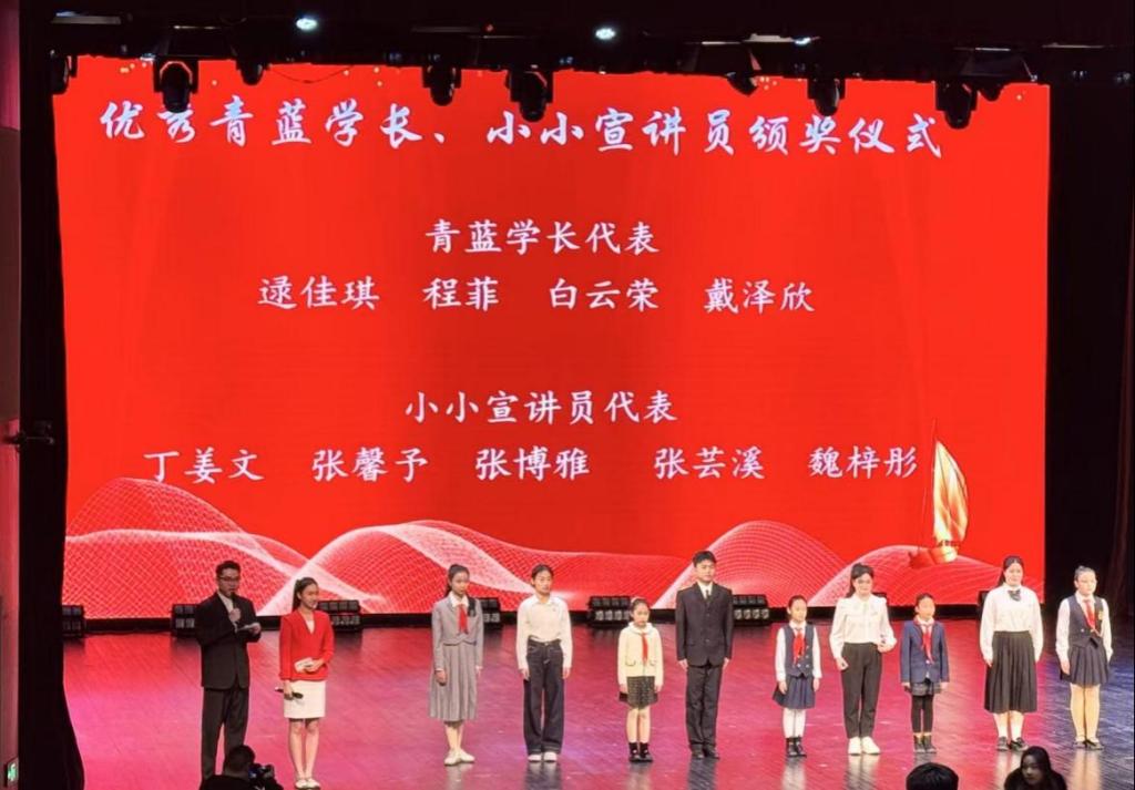 自2025年10月西海岸新区教育和体育局启动思政课一体化建设“生生互动”教育行动以来,我院作为第八小组“组长校”,联合组内8所中小学校深入开展联学共建系列活动,取得了一定成绩。本次展演活动中我院硕士生戴泽欣等高校大学生代表被授予优秀“青蓝学长”荣誉,这既是对这些大学生青蓝学长的高度认可,也是对我院在发挥师资力量优势、服务地方经济社会方面工作的充分肯定。