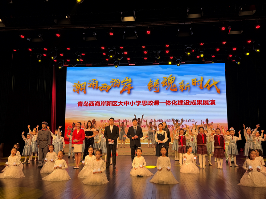 成果展演以“潮涌西海岸 铸魂新时代”为主题,分“潮起·风帆劲”“朋辈·共成长”“山海·新征程”三个篇章层层递进,各学段师生协同演绎,先后呈现诗歌朗诵、红色舞台剧、情景宣讲、思政情景剧等形式多样的精彩节目,生动诠释新区大中小学思政课一体化建设“循序渐进、螺旋上升”的育人理念,展现了西海岸新区思政教育一体化的实践成效与创新活力。