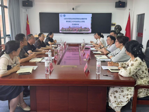 座谈会伊始,石峰代表学院对吴丽萍主任一行的到来表示热烈欢迎,并详细介绍了学院学科建设、研究生招生与培养的具体情况。吴丽萍简要介绍了山东水利职业学院思想政治课教学部在教学、科研、师资等方面的基本情况,同时对两院在“大思政课”建设、比赛打磨、课题申报等方面即将展开的深入合作表示期待。
