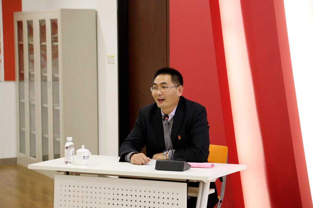 启动仪式后,王菁华、李龙强、王玉喜三名党建指导员分别以《旗帜就是方向》《国旗国徽的故事及其启示》《坚持新发展理念——协调》在主会场、党员活动室、党旗下为各联系支部开讲党课。