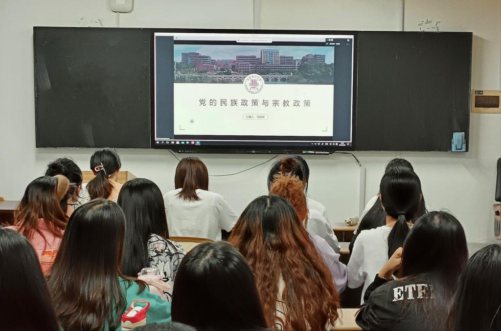 为深入学习习近平总书记关于民族宗教工作的重要论述,进一步提高学院师生对党的民族政策与宗教政策的理解和认识,树立正确的民族宗教观,马克思主义学院以线上线下相结合的方式于9月20日晚7时在主教学楼A310举办“党的民族政策与宗教政策”主题讲座。本次讲座由马克思主义学院博士马琰琰主讲,学院党总支副书记兼副院长李龙强主持,全院师生于线上线下同步参加。