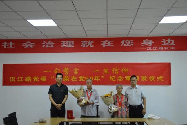 接下来,李龙强与葛林为“光荣在党 50 年”的两位老党员颁发纪念章并送上鲜花,向他们表示热烈祝贺和崇高敬意。老党员表示,感念党的关怀培养,他们将一如既往地关心支持基层工作,为奋进新征程贡献自身的一份力量。