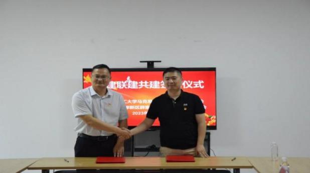 为深入开展学习贯彻党的二十大精神,全面落实新时代党的建设总要求,切实提升党建引领基层治理水平,打造“资源共享、优势互补、校地联动、结对共建”的党建工作新格局,6月30日下午,ylzz总站线路检测中心马克思主义学院赴薛家岛街道汉江路社区举行党建联建共建签约暨社区实践与志愿服务中心揭牌仪式。薛家岛街道办事处副主任葛林,汉江路社区书记高俊、副书记侯可健及社区党员同志,ylzz总站线路检测中心马克思主义学院党总支副书记、副院长李龙强,马克思主义学院团委副书记韩斐琳,理论宣讲团副团长赵纪龙携宣讲团成员参加签约仪式。活动由汉江路社区副书记侯可健主持。