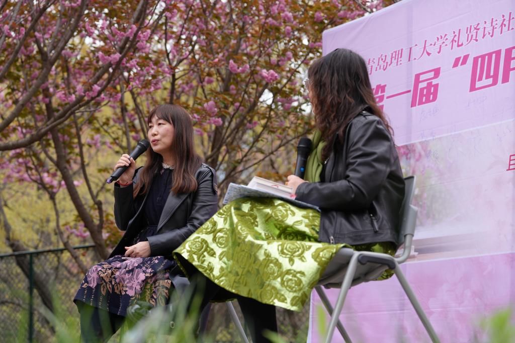 诗会收到了我校各学院诗歌爱好者的学生诗稿,有现代诗《春日理工》《烂漫春情》《看见》《时间》等,有古体诗分享《鹧鸪天·咏海棠》《观影闻太白事有感》《春日赋》等,还有2023年获得山东省心理健康节三行诗比赛获奖的作品串烧。青岛滨海学院3位同学也到场分享诗作。