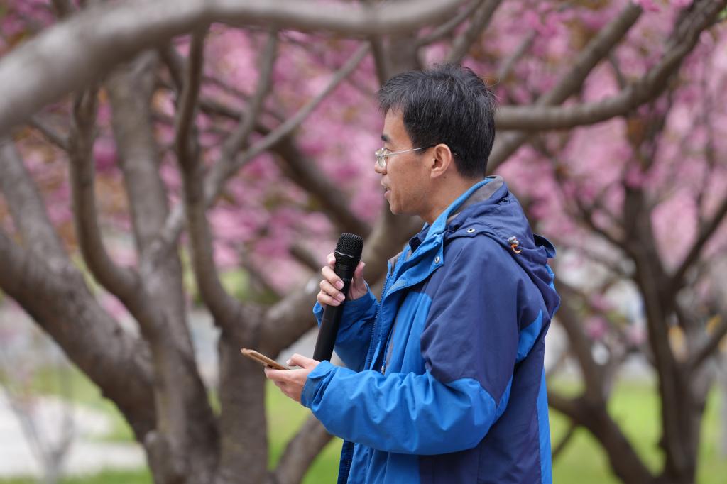 最后压轴的是马克思主义学院教师、礼贤诗社社长柯莉老师为本次诗会专门创作的《双樱园》,她说在理工校园的双樱园办诗会是多年的夙愿,因为师友学生的共同奔赴,方玉成此事。为了赶上双樱的盛放,“我是那么地鲁莽,给一朵花规定了开放的时间”“从未像这个春天这样,专注于一树花开”。柯莉老师的诗歌饱含对学校的深情,也寄托了对学生的期许。