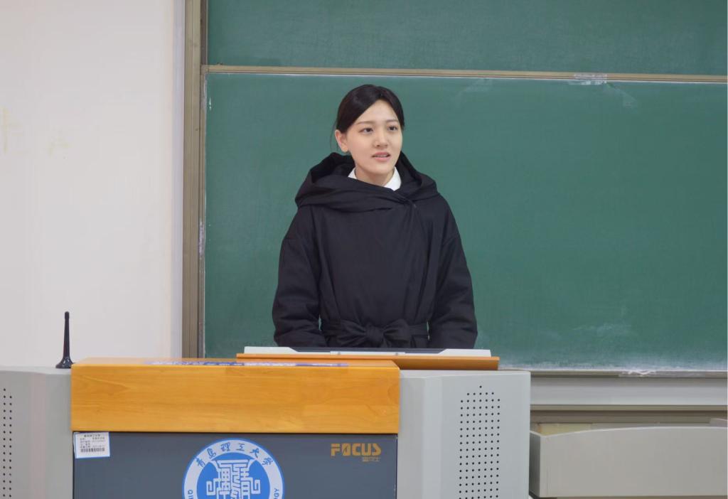 首先,韩斐琳向同学们简要介绍了本次分享会的两位主讲人兰欣、王炳蓉,并向她们表示热烈欢迎。兰欣,现就职于青岛电影学院,担任马克思主义学院党支部宣传委员、思政专任老师。王炳蓉,现就读于中国石油大学(华东),马克思主义中国化方向博士生。