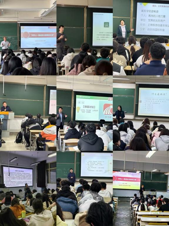 教研室主任刘亚鹏表示:“以‘诚信是立身之本、社会之基’为授课主线,深挖中华传统诚信思想精髓,讲清楚诚信的文化底蕴;结合《民法典》等法律法规阐明诚信的重要价值;针对学术诚信、网络诚信、职业诚信等热点问题,探讨如何强化学生辩证思考与实践能力,让同学们从学理和实践维度加深对诚信的认识。”