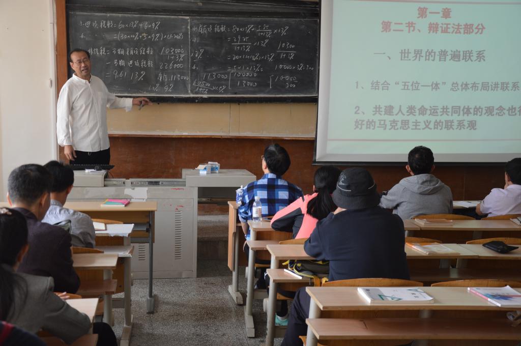 为了深入学习贯彻习近平总书记3月18日全国学校思想政治理论课教师座谈会上的讲话精神,落实中共中央办公厅国务院办公厅印发《关于深化新时代学校思想政治理论课改革创新的若干意见》,进一步推动习近平新时代中国特色社会主义思想“进教材、进课堂、进头脑”工作,切实履行思想政治理论课立德树人根本任务的关键课程作用,马克思主义学院10月9日于一教531举行全院集体备课大会,即习近平新时代中国特色社会主义思想“三进”工作推进会,学院全体教师参加备课会,教学副院长华章琳主持了备课会。