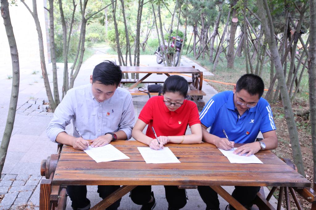 活动接近尾声,三个支部相关负责人签署了支部共建协议。依照协议,在后续的主题教育活动中,马克思主义学院教工一支部教师将发挥理论优势,向商学院学生一支部、韶山路社区党支部定期开展主题教育活动讲座,商学院学生一支部学生党员围绕着主题教育活动的要求,将深入韶山路社区开展敬老、扶老及心理咨询等志愿服务。