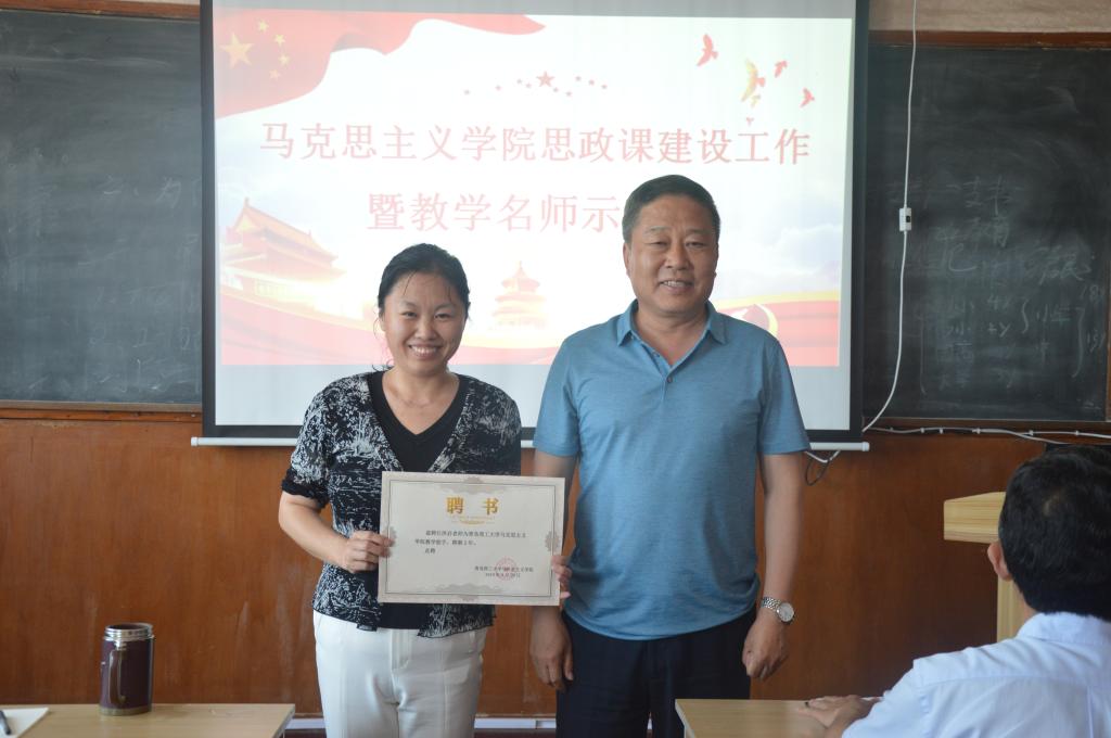 示范教学活动开始之前,举行了学院教学能手聘书颁发仪式。华章琳主持仪式,王菁华书记和陈国庆院长分别代表学院向四位教学能手颁发了聘书。