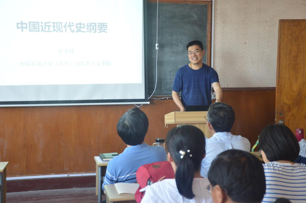 为了深入领会习近平总书记在学校思政课教师座谈会上的讲话精神,更好的促进习近平新时代中国特色社会主义思想“进教材、进课堂、进头脑”,提升思政课教学效果。马克思主义学院5月29日邀请山东省思政课教学名师、中国石油大学(华东)马克思主义学院崔军伟副教授开展思政课示范教学活动。马克思主义学院全体教师参加此次活动,活动由马克思主义学院副院长华章琳教授主持。