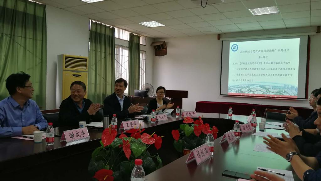 2019年4月26日、27日,我院王菁华书记、李建勇及王玉喜老师应邀赴武汉科技大学参加由武汉科技大学马克思主义学院、湖北意识形态研究院、《学校党课与思想教育》杂志联合主办的高校党建与思政教育创新论坛。在论坛开幕之前,王菁华书记率领两位老师参观了武汉科技大学马克思主义学院,期间双方围绕着三全育人教学、校本课程开设、科研团队建设、学科建设、人才引进制度改革、智库建设等内容进行了友好而富有成效的交流。在高校党建与思想政治教育论坛上,王菁华书记在主席台就座并就《传播技术与大学文化生态》作主旨发言。李建勇老师、王玉喜老师分别向论坛提交论文《高校纪念活动及其思想教育功能》、《“育新人”视域下思政课教师厚植家国情怀的路径探析》,并进行了学术交流。这次参会不仅丰富了马克思主义学院教学和科研管理经验,而且提升了马克思主义学院对三全育人以及学院党建文化研究与思政教育的深刻认识。