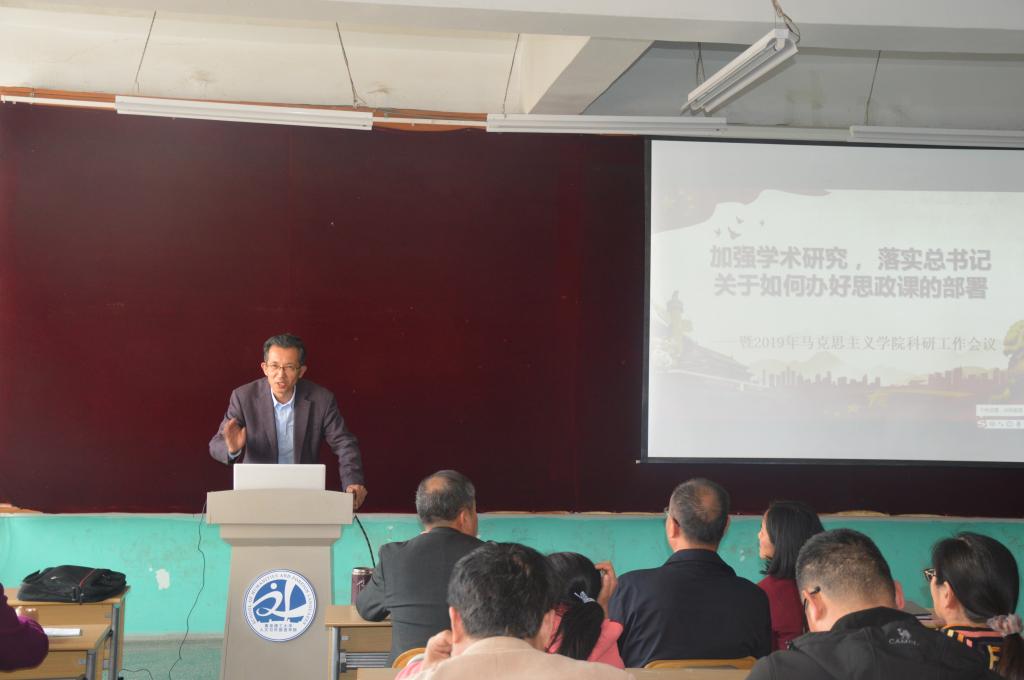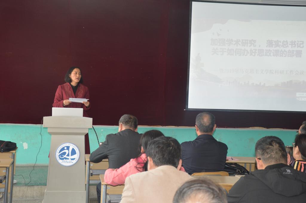 为加强学术研究,落实习近平总书记关于办好思政课的部署,4月17日下午,马克思主义学院2019年度科研工作会议在长江路校区会议室举行。马克思主义学院院长陈国庆主持会议,会议梳理了过去一年学院科研工作情况,表彰了在科研工作中表现突出的教师,并对未来3年学院科研工作进行了规划部署,提出了具体要求。