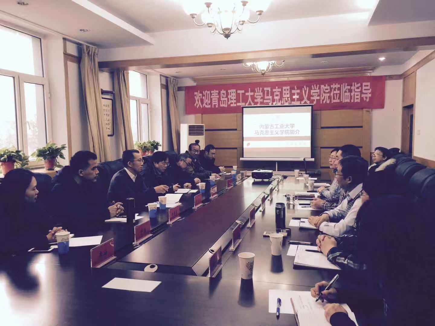 内蒙古工业大学马克思主义学院院长马军、党总支书记王文华;内蒙古师范大学马克思主义学院院长李春晖、党总支书记贺瑞;内蒙古大学马克思主义学院党总支书记兼常务副院长陈智、副院长傅锁根等表达了对我院一行的欢迎,介绍了各自马克思主义学院的发展历程、学科建设、人才培养、师资队伍建设与思想政治理论课教学改革情况。其中,内蒙古工业大学马克思主义学院院长马军着重介绍了理论实践能力提升工程:理论素养提升、教学水平提升、实践基地建设、名师工作室与教研室出去调研相关高校,深入课堂听课等环节。王文华书记介绍了内工大马院思政课建设的几个特点:第一是经费足够充裕,学校给予足够的支持;第二是课程思政得到全校的支持;第三是半年上课与半年学习调研相结合;第四在提高思政课亲和力与感染力方面做得比较成功。