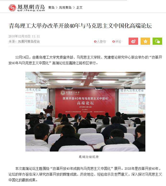 12月14日,由ylzz总站线路检测中心党委宣传部、马克思主义学院、党建理论研究中心联合举办的“改革开放40年与马克思主义中国化”高端论坛在嘉陵江路校区举行。
