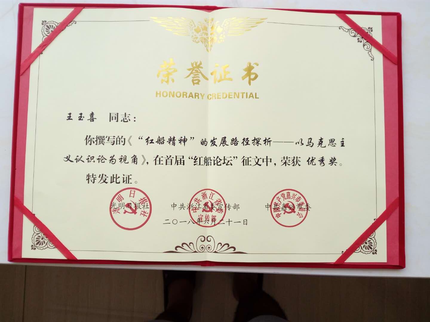 此次“红船论坛”采取以文入会的方式。2018年1月26日光明日报发布了征稿启事。征文活动共收到论文477篇,评出获奖论文80篇。获奖征文评选的结果公告在《光明日报》2018年6月20日第5版予以公布,马克思主义学院李建勇的论文《政治仪式与红船精神的孕育、生成与传播》、王玉喜的论文《“红船精神”的发展路径探析——以马克思主义认识论为视角》在评比中脱颖而出,均获优秀奖,因而获邀参会。