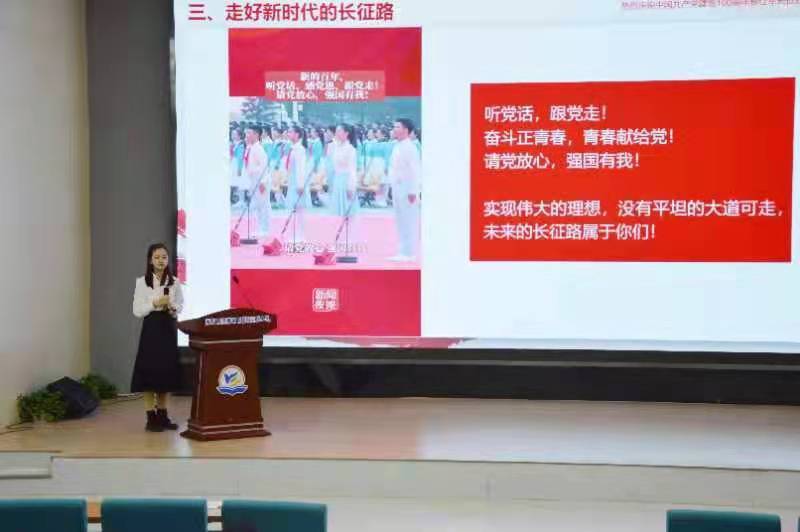 讲好红色故事,传承好红色基因,延续好红色血脉。从红军长征爬雪山到临危不惧、可歌可泣的狼牙山五壮士再到伟大的抗美援朝战争,三位宣讲员声情并茂地讲述感人至深的红色故事和先进事迹,给同学们带来一场身临其境的红色文化洗礼。大家仿佛回到了那个硝烟弥漫的红色年代,亲历着革命先辈们的峥嵘岁月。同学们的爱国热情高涨,他们看到了先辈们为了革命,抛头颅、洒热血的勇气;也感受到他们胸怀理想、一心向党、不畏牺牲、宁死不屈的精神;更懂得了今天的幸福生活来之不易,是先辈们用鲜血的代价换来的。此外,活动环节还穿插有奖问答、诵读等,学生们听到提问后纷纷举手回答,现场气氛热烈。