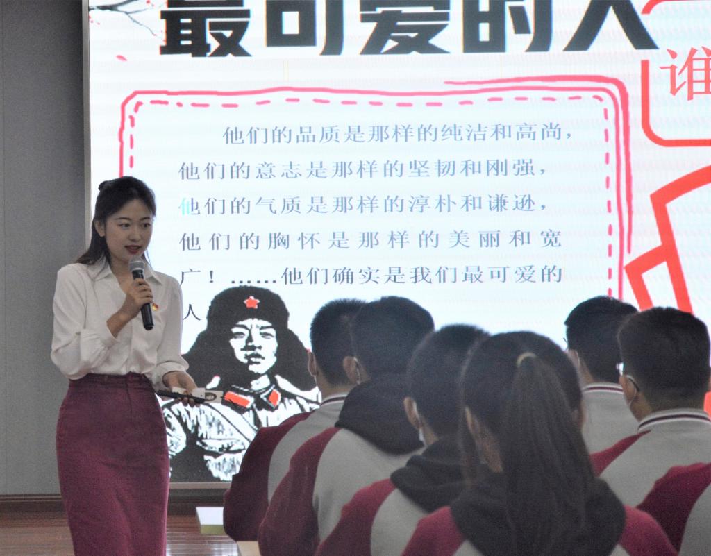 活动伊始,宣讲员王晨以新中国第一位特等功臣杨根思烈士为例,以其“三送拉雷”到“扼守小高岭”的英雄成长事迹来勉励同学们要向先辈学习,世上没有从天而降的英雄,只有挺身而出的凡人。随后,宣讲员李艳芳从上甘岭战役的故事出发,以一首红色歌曲、一张老照片、一段战斗视频向同学们呈现了以弱胜强又异常惨烈的上甘岭战役,展现了志愿军殊死搏斗,用鲜血和生命捍卫胜利的上甘岭精神。最后,宣讲员王玉雪从邱少云烈士出发讲述最可爱的人——中国人民志愿军,英雄从来都不只是一个人,而是一个群体,正是中国人民志愿军每名士兵的接续奋斗汇聚成就了抗美援朝的伟大胜利。宣讲团通过对革命烈士的缅怀与歌颂,呼吁同学们接过革命先辈的接力棒,将抗美援朝精神内化于心外化于行,为实现中华民族伟大复兴而顽强拼搏不懈奋斗。