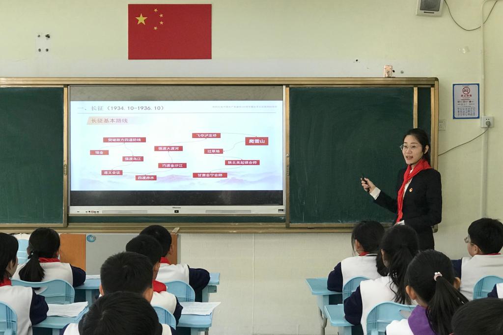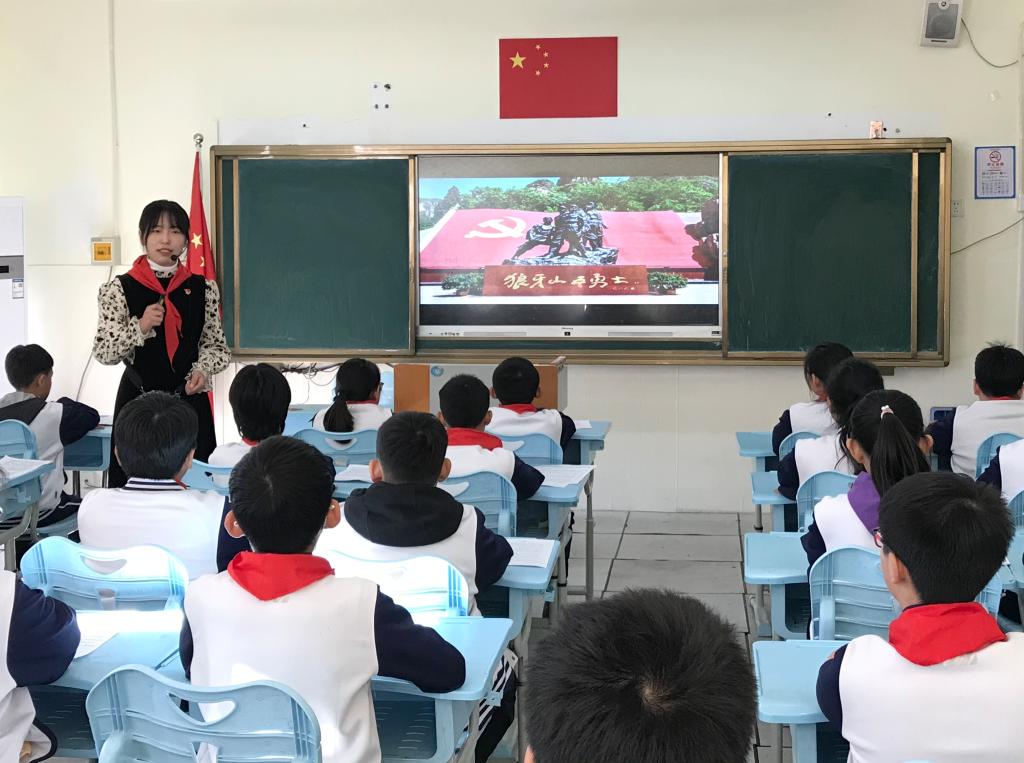随后,刘玉莹、李晓萌、何文华以革命先烈的英雄事迹为源,兼以图文并茂、深入浅出的方式,先后介绍了“爬雪山”、“狼牙山五壮士”、“抗美援朝”的党史小故事,进一步深化了小学生们对革命英雄的感知,增强了小学生们对革命精神的感悟,使共产党人的红色革命精神成为小学生们心中的灯塔,激励他们在成长成才的路上不断前行。宣讲课堂的气氛极其活跃,每一个革命故事的生动讲解都得到了学生们的积极回应,宣讲团成员与学生互动频繁,现场高潮不断,掌声经久不息。