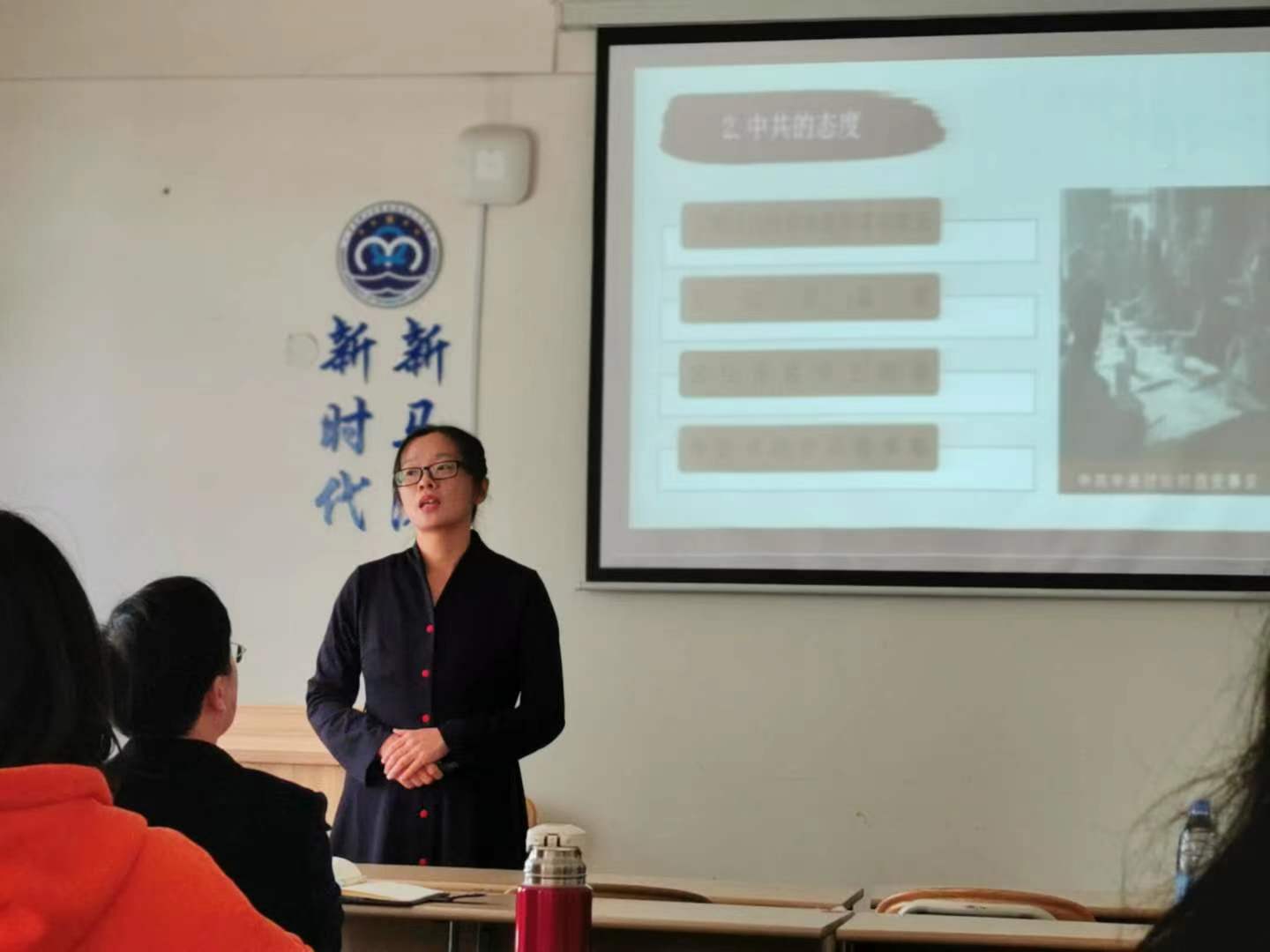 赵筱侠老师的主讲题目是“西安事变”,围绕着西安事变的历史背景、过程、解决以及事件结束后的国共合作来展开。林丰艳老师讲解了“帝国主义对中国的军事侵略”,开篇抛出问题,最后以解决问题实现升华。两位老师以扎实的理论基础、丰富的教学手段、巧妙的设问与互动、多样的教学案例充分展示了马克思主义学院教师的风采。