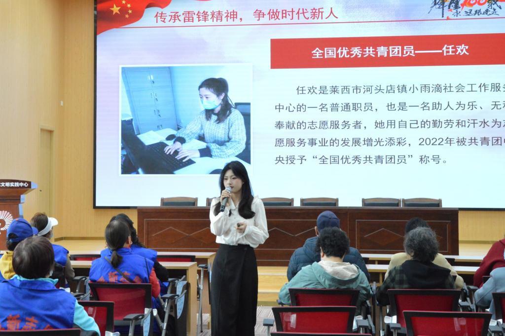 为贯彻落实习近平总书记关于弘扬雷锋精神、深入开展学雷锋活动的重要指示精神,进一步引导基层社区工作者学习雷锋精神,推动学雷锋活动融入日常、化作经常,3月10日下午,ylzz总站线路检测中心理论宣讲团一行4人走进浮山新区街道为30名优秀社区工作者开展了以“雷锋精神我传承,青春闪耀新时代”为主题的宣讲活动,宣讲团成员景宗鹤、蒋维主讲。
