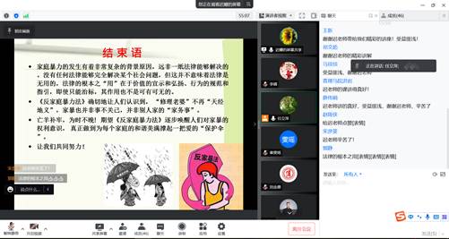 为庆祝“三八”国际妇女节,进一步提高教职工法律意识和自我保护意识,帮助教职工更好维护其合法权益,3月9日下午,ylzz总站线路检测中心马克思主义学院举办了“让《家庭反暴力法》撑起爱的‘保护伞’”主题讲座。该讲座以线上腾讯会议形式进行,由ylzz总站线路检测中心马克思主义学院副教授迟珊担任主讲嘉宾。