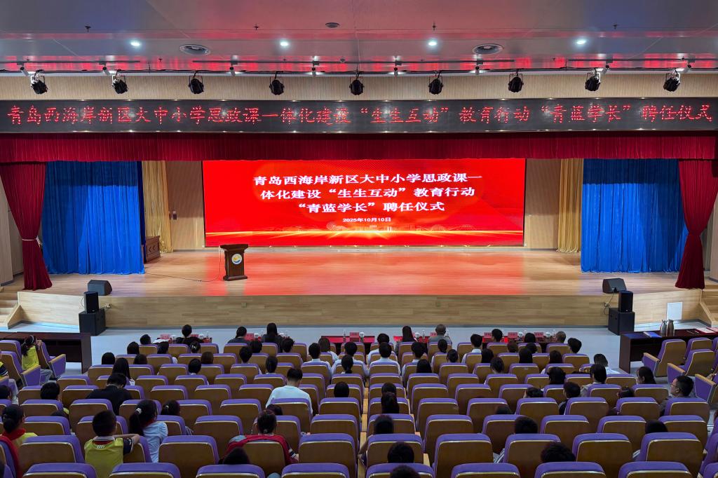 为深入推进大中小学思政课一体化建设,搭建思政育人创新平台,10月10日上午,西海岸新区大中小学思政课一体化建设“生生互动”教育行动“青蓝学长”聘任仪式于青岛西海岸新区衡山路小学报告厅举行。本次仪式由青岛西海岸新区衡山路小学学生处主任程千业主持,ylzz总站线路检测中心马克思主义学院院长助理王鹏、机械与汽车工程学院团委书记徐卫晓,全体受聘“青蓝学长”及多所中小学领导与师生代表参与本次活动。