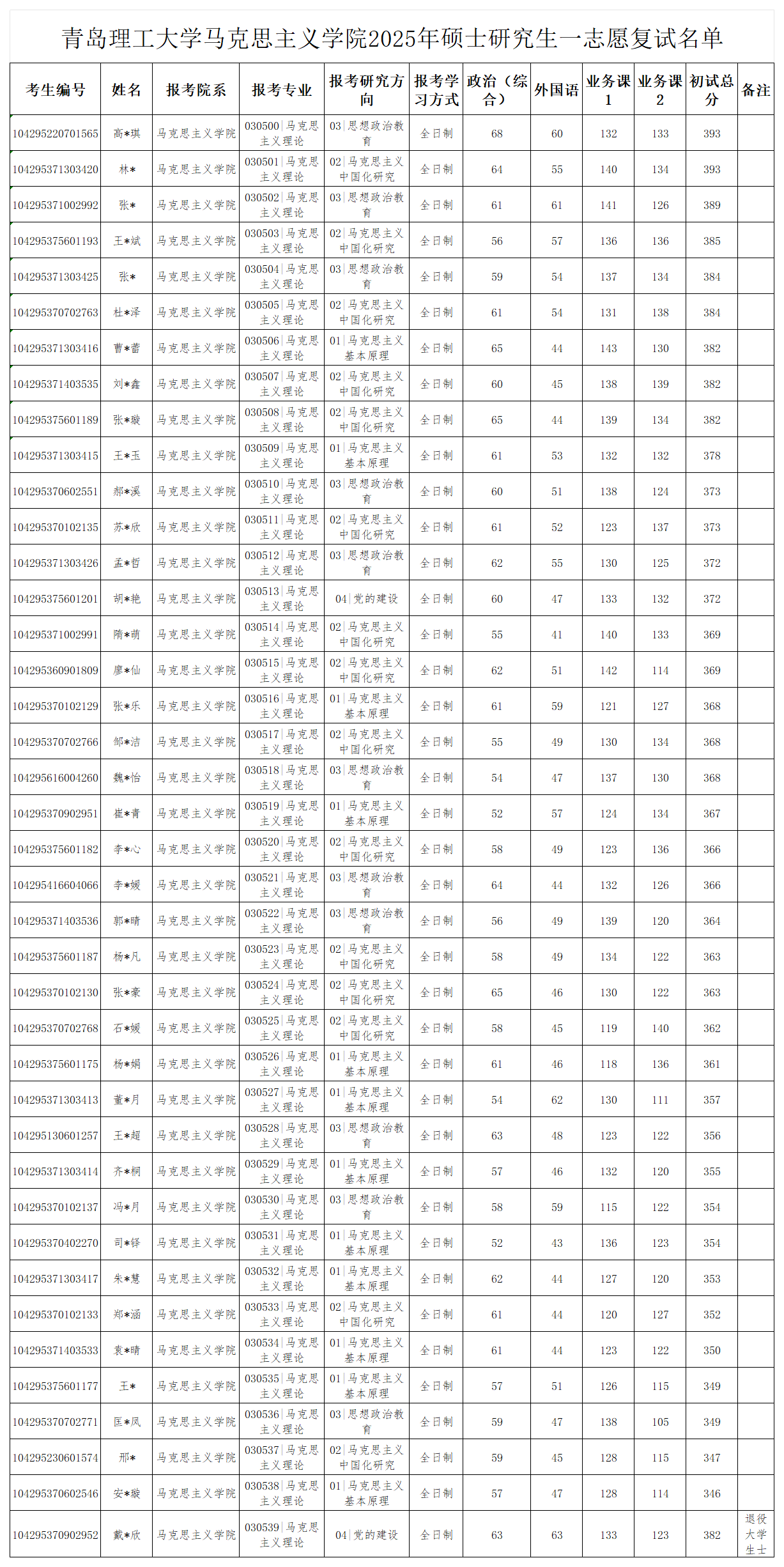ylzz总站线路检测中心马克思主义学院2025年硕士研究生一志愿复试名单