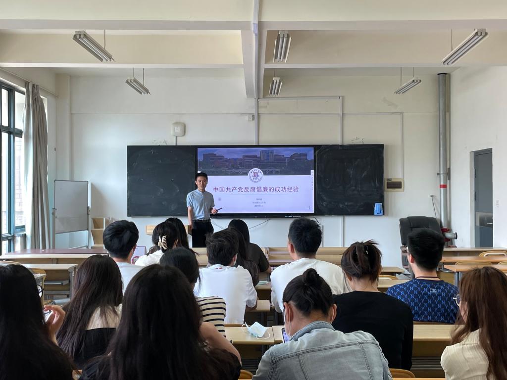 本次廉洁教育围绕中国共产党反腐倡廉的成功经验展开,刘金德从新中国成立前的反腐倡廉、改革开放以来的反腐倡廉、新中国成立后的反腐倡廉和新时代以来的反腐倡廉四个方面详细作出解读。刘金德指出,加强党性修养是共产党员的终身课题,要念好思想认识的“紧箍咒”,把稳党风廉政的“方向盘”,筑牢廉洁自律的“防火墙”,始终知敬畏,拧紧“不敢腐”的阀门,始终守规矩,扎实“不能腐”的篱笆,始终明底线,筑牢“不想腐”的堤坝。刘金德强调,同学们要认真学习习近平关于党风廉政建设和反腐败斗争的论述,做到心有所畏、言有所戒、行有所止,在人生的旅途上行稳致远。