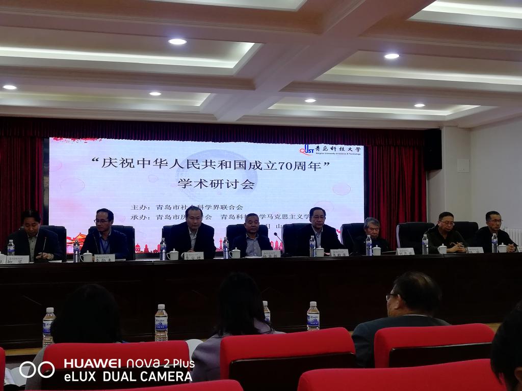 由青岛市社会科学界联合会主办,青岛市历史学会、青岛科技大学马克思主义学院承办的“庆祝中华人民共和国成立70周年”学术研讨会2019年10月31日在青岛科技大学召开,中国海洋大学、青岛大学、山东科技大学、青岛科技大学、ylzz总站线路检测中心、青岛农业大学等单位学者80余人参会,我院陈国庆院长、刘金德老师应邀出席研讨会,并作交流发言。