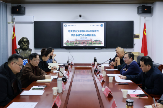为深入推进学院科研工作高质量发展,系统部署2026年标志性项目申报工作,12月17日下午,马克思主义学院于主教学楼A310会议室召开2026年标志性项目申报工作中期推进会。马克思主义学院院长华章琳、党委副书记兼副院长石峰、副院长李龙强、院长助理王鹏、王悦佳,各科研团队负责人及科研骨干参加。本次会议由马克思主义学院院长华章琳主持。