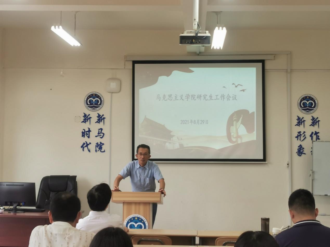 为进一步推进马克思主义理论一级学科发展,完善2021年版马克思主义理论硕士研究生培养方案,规范研究生培养程序与要求,提高马克思主义理论研究生培养质量。8月29日上午,马克思主义学院在主教学楼A310教室,召开了学院研究生管理工作会议。学院领导班子、研究生导师、专业课任课教师和公共课任课教师参加会议,会议由院党委副书记兼副院长华章琳主持。